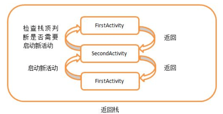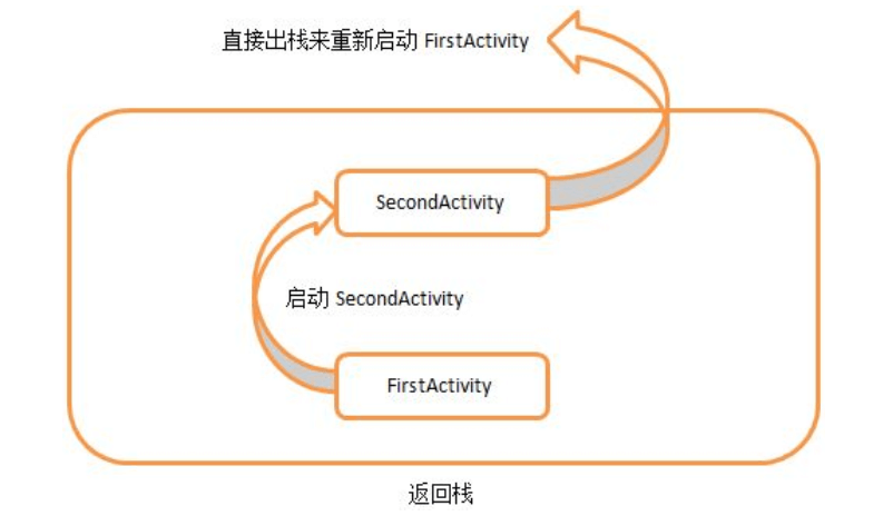 使用此模式,每次启动该活动时系统首先会在返回栈中检查是否存在该活动的实例,如果发现已经存在则直接使用该实例,并把在这个活动之上的所有活动统统出栈,如果没发现该活动实例,就会创建一个新的活动实例。