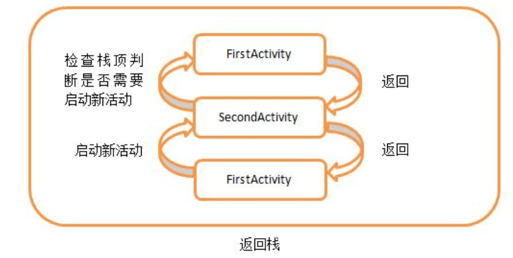 此模式下,在启动活动时发现返回栈的栈顶已经是该活动,则直接使用,不再创建新的活动实例。但如果该活动不位于栈顶位置,则再次启动该活动时,还是会创建新的实例