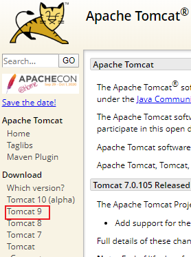 左侧选择下载版本,我这里下载Tomcat9