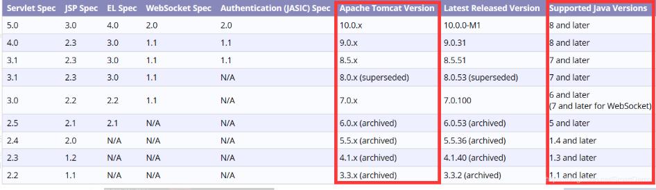 注意:要根据自己的JDK版本选择Tomcat的版本。